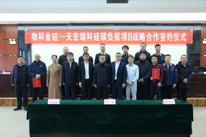 2024年1月30日,陕西有色天宏瑞科硅材料有限责任公司与四川物科金硅新材料科技有限责任公司就硅碳负极项目战略合作举行了签约仪式。